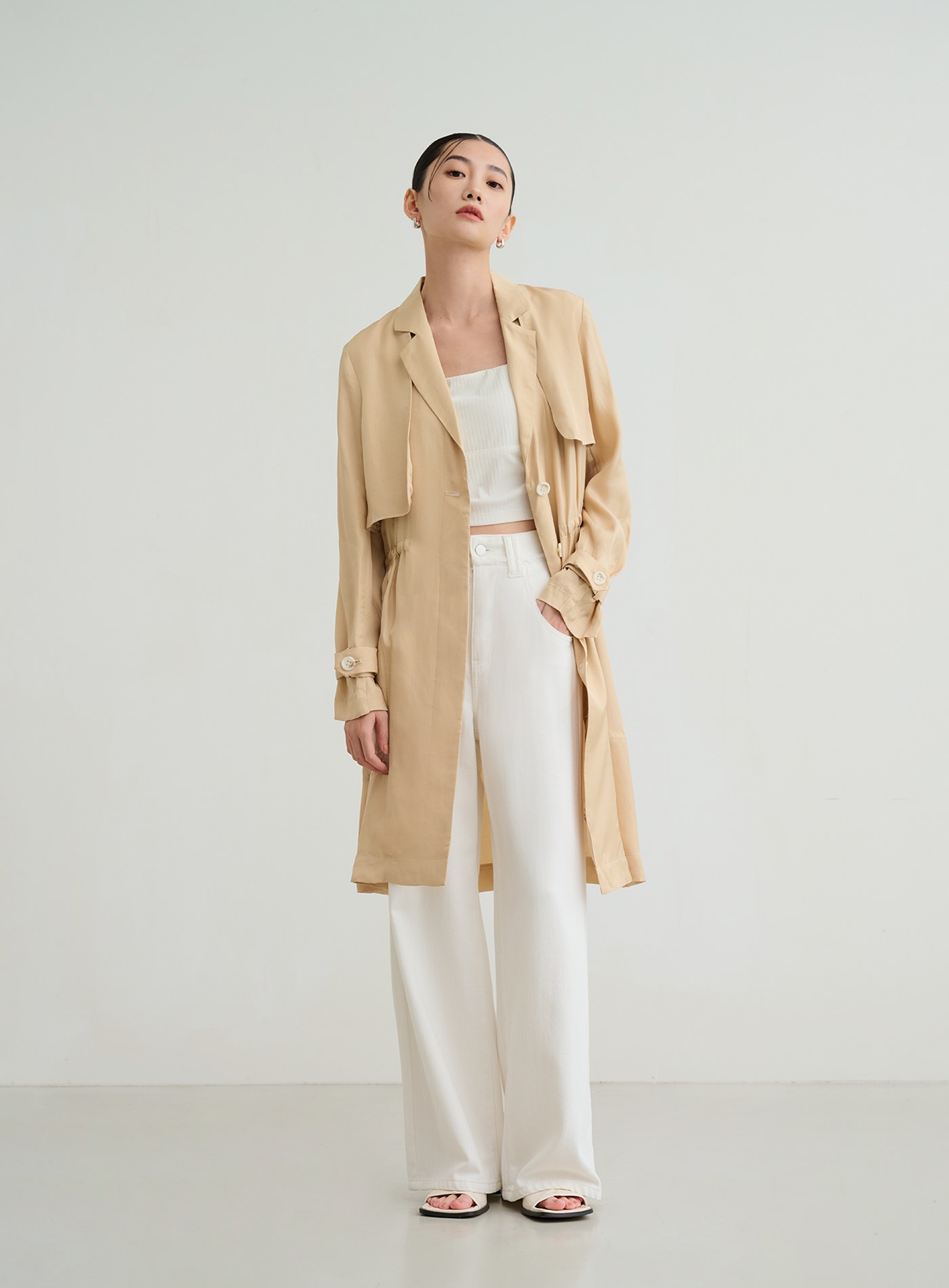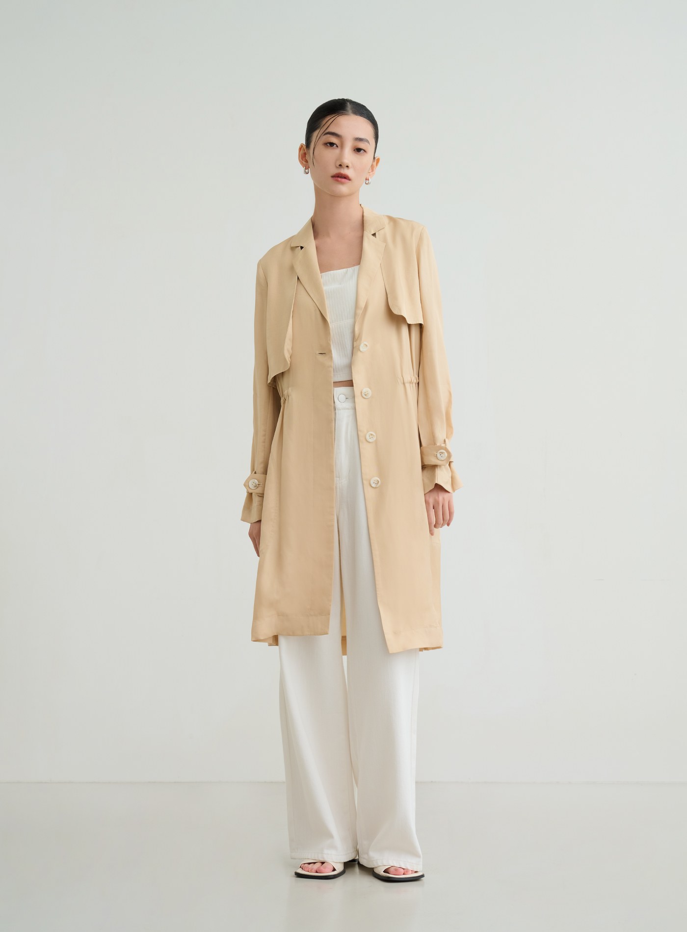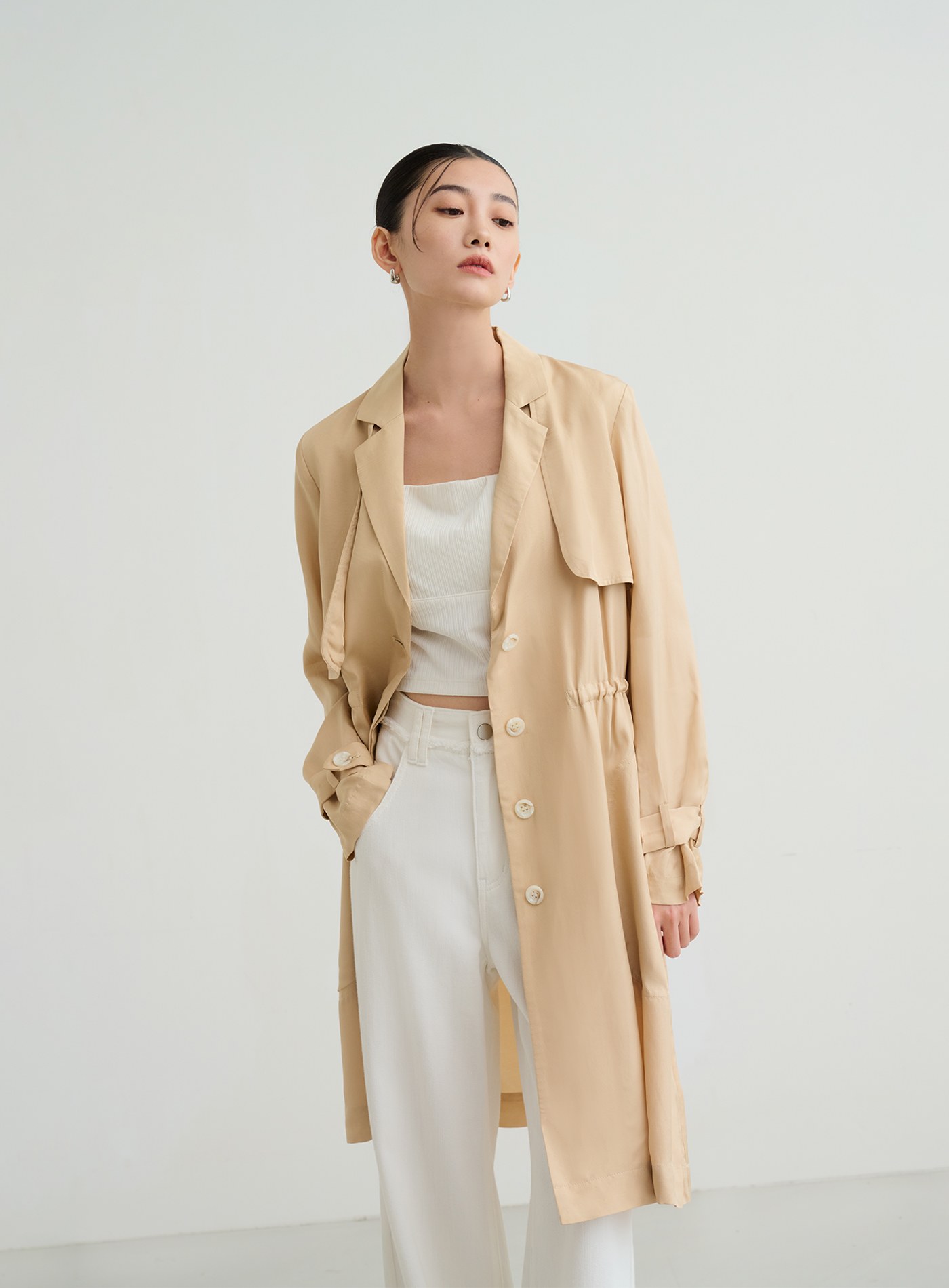 俐落輕挺寬鬆落肩風衣外套$124 USD